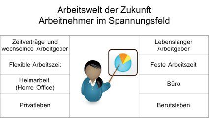 Also auch hier die Frage, wie ich Flexibilität, die mir moderne Technologien wie das Mobiltelefon oder immer währender Netzzugang bieten, organisiere, wie ich mein Arbeitsleben organisiere, meine Rechte als Arbeitnehmer wahre, aber auch die neuen Chancen nutze.