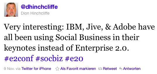 Es deutet sich eine neue Debatte rund um Enterprise 2.0 und Social Media an. Auf der Enterprise 2.0 Konferenz in Santa Clara wurde vermehrt der Begriff Social Business (anstelle von Enterprise 2.0) verwendet.