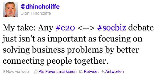 - Enterprise 2.0 ist zu eng gefasst. Enterprise 2.0 muß sein, aber wir müssen über die Unternehmensgrenzen hinaus denken – und gehen.