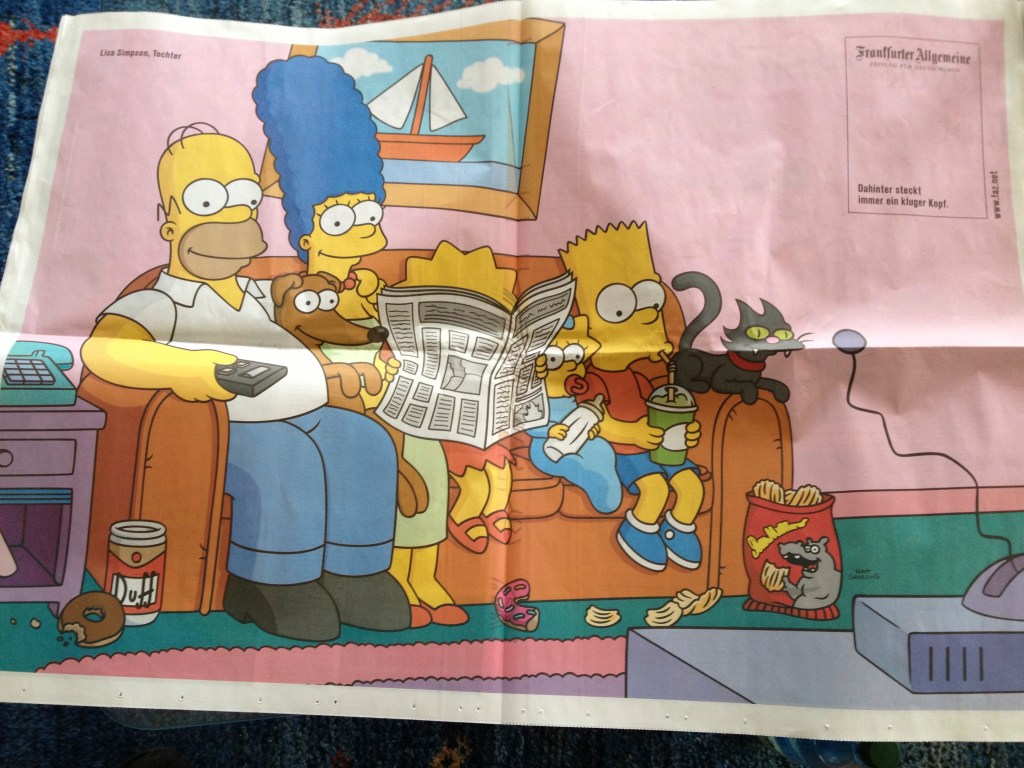 Eine Doppelseite in der Frankfurter Allgemeinen am Sonntag. Ich war schon immer ein absoluter Fan von Dahinter steckt ein kluger Kopf, diesmal Lisa Simpson.
