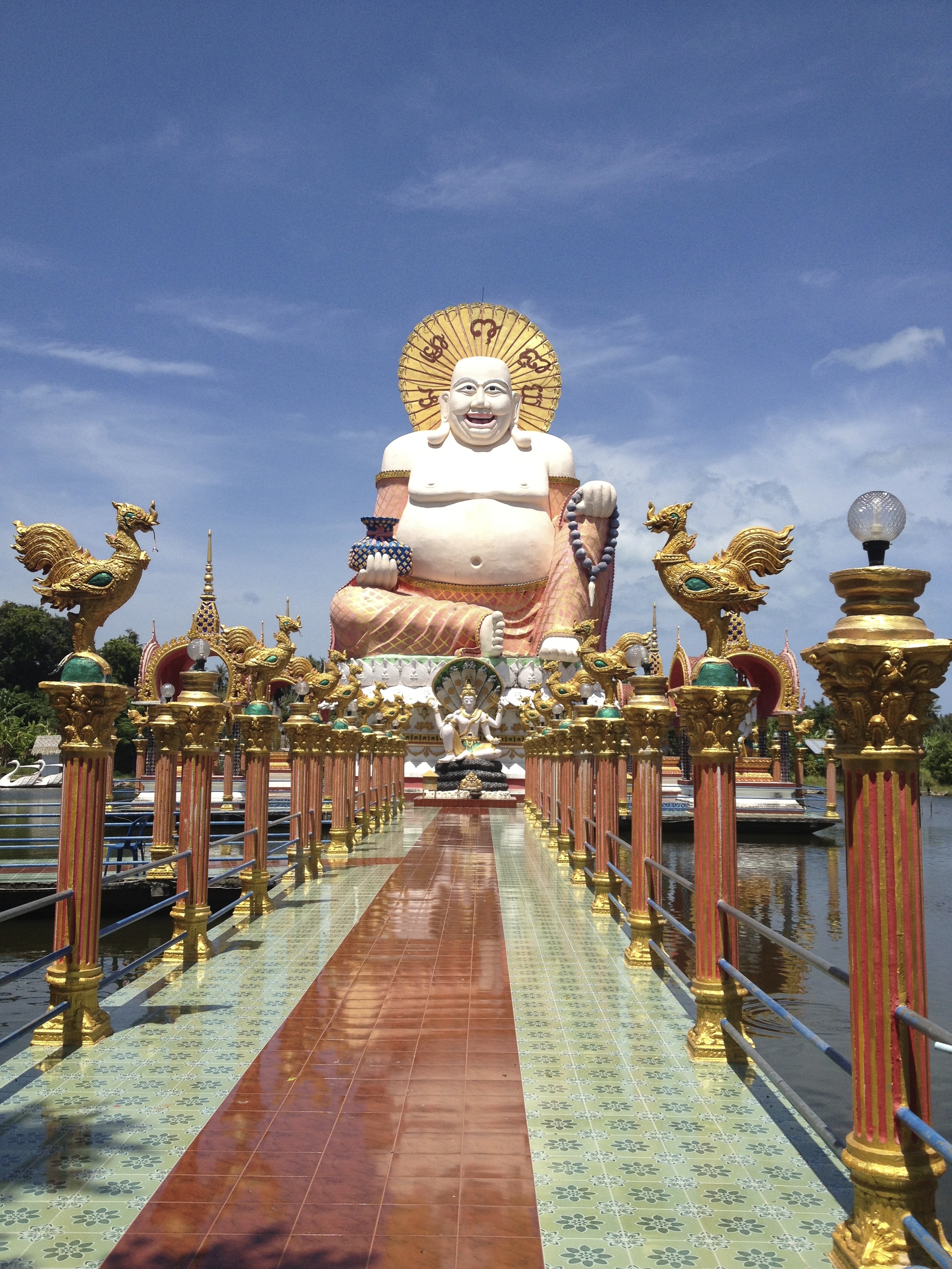 Die Insel: Die Insel Koh Samui empfand ich als sehr überschaubar. Wir sind an einem Tag mit einem Taxi rund um die Insel, 5 Tempel, von Big Buddha bis zu weniger bekannten, exotischeren Tempeln. Wer will, kann auch Krokodile, Tiger und Schlangen besichtigen. Es gibt zwei Wasserfälle, an denen man Elefanten reiten kann. Das musste dann nicht sein. Mae Nam ist einer der ruhigen, noch verschlafenen Orte. wer es lebendiger und touristischer mag, der kann in Chaweng oder Lamai absteigen.