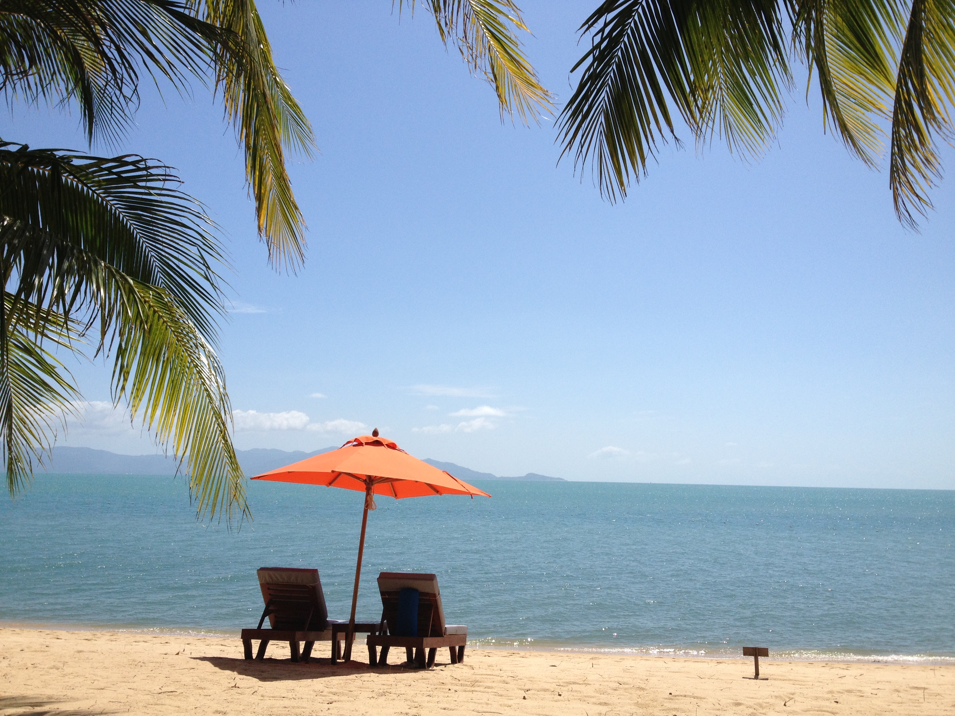 Der Flug: Geflogen sind wir mit Thai Airways nach Bangok. Die A380 war im Juni 2013 bei weitem nicht ausgebucht, so dass wir eine Sitzreihe für uns hatten. Mir schien, dass Thai den Economy-Passagieren (zumindest im Vergleich zur 747 der Lufthansa) mehr Beinfreiheit einräumt. Der lange Flug war so angenehm und entspannt. Nach einem Tag in Bangok sind wir dann mit Bangok Airways nach Koh Samui auf einen kleinen, verschlafenen Flughafen: Ein kurzer, relaxter Flug.
