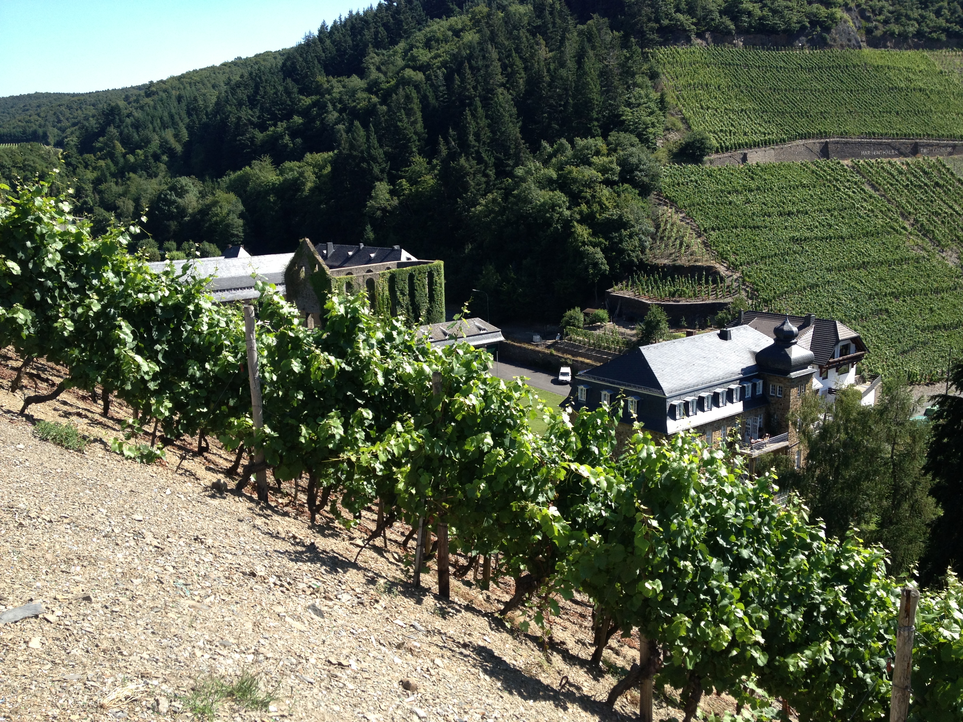 Ich will hier nicht chronologisch die Reise darstellen, jedoch auf einige High- und nicht so „high“ Lights der Reise eingehen. Gegessen haben wir am Freitag im Restaurant Prümer Gang in Ahrweiler. Ich hatte das Menü des Monats in der 3-Gang-Variation mit Melone-Papayasalat mit Wakame und gebratener Jakobsmuschel, Kalbsfiletmedaillon, dazu Pfifferlinge und Rösti und der Pflaumentarte. Höhepunkt des Menüs waren für mich die Jakobsmuscheln, die anderen Gänge waren gut bis sehr gut, aber nicht „outstanding“. Dazu getrunken habe ich „offene Weine“, vom Riesling bis zum Spätburgunder (und habe natürlich bewusst Ahrweine gewählt). Am Samstag ging es dann in das Hohenzollern über den Dächern von Ahrweiler. Dort bin ich weintechnisch nach dem gleichen Prinzip verfahren, hatte Schwertfisch und Eifel-Reh zum essen. Der Fisch war mir etwas zu geschmacklos, das Reh sehr gut.