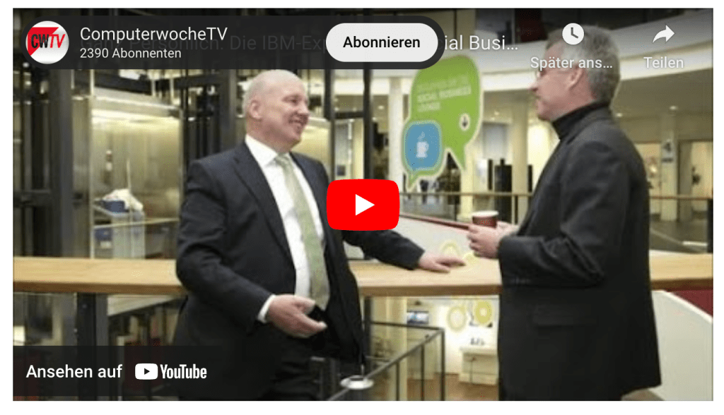 Vor einigen Wochen hatte ich Besuch von einem Kamerateam der Computerwoche, die mich bei meiner täglichen Arbeit gefilmt haben. Der Hintergrund: Seit einigen Monaten bin ich auf ibmexperts.computerwoche.de als „Exbbberdeee“ für Social Business tägig, schreibe dort Beiträge und beantworte Fragen zusammen mit meinem Kollegen Peter Schütt. Lange habe ich gezögert, wie meine Arbeit aufgenommen werden soll, mich aber dann entschieden, mein privates HomeOffice zu öffnen.