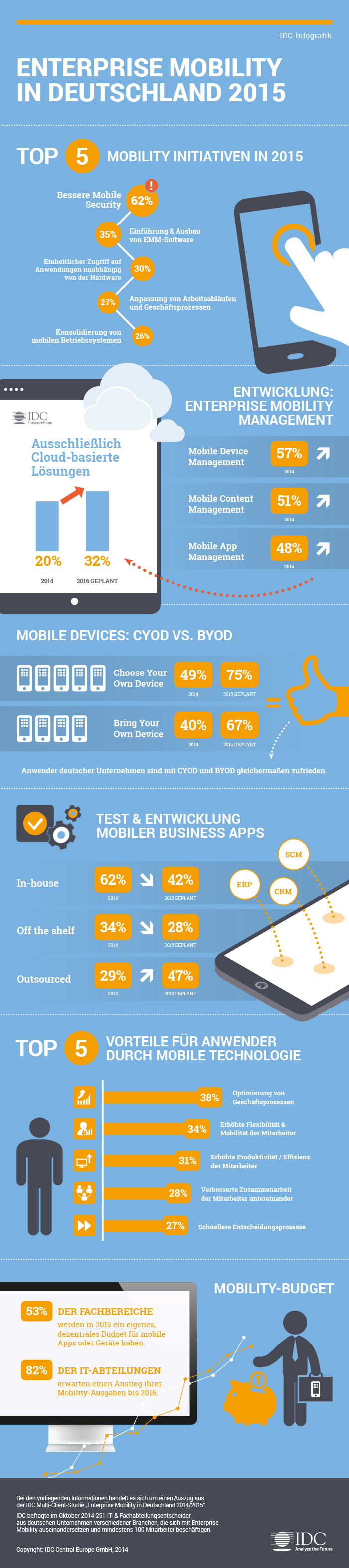 Michael Kroker fasst auf Wirtschaftswoche.de die zentralen Erkenntnisse der IDC-Studie zum Thema Enterprise Mobility in Deutschland im Jahr 2015 zusammen: