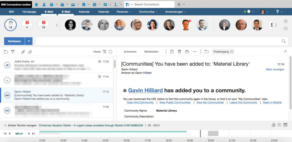 Nur einen Wermutstropfen gibt es noch: Ich bin noch nicht mit meiner gesamten Arbeitsumgebung in der Cloud und kann so einige Lieblingsfunktionen in IBM Verse noch nicht nutzen. Die intern genutzte On Premises-Version von IBM Connections, die IBM historisch seit vielen Jahren einsetzt, ist noch nicht in die Cloud migriert worden. Dadurch kann ich noch nicht oder nur eingeschränkt mit den Funktionen Nachricht in einem Blog publizieren und Datei teilen arbeiten. Diese Befehle funktionieren derzeit nur gegen die Cloud-Version von IBM Connections.