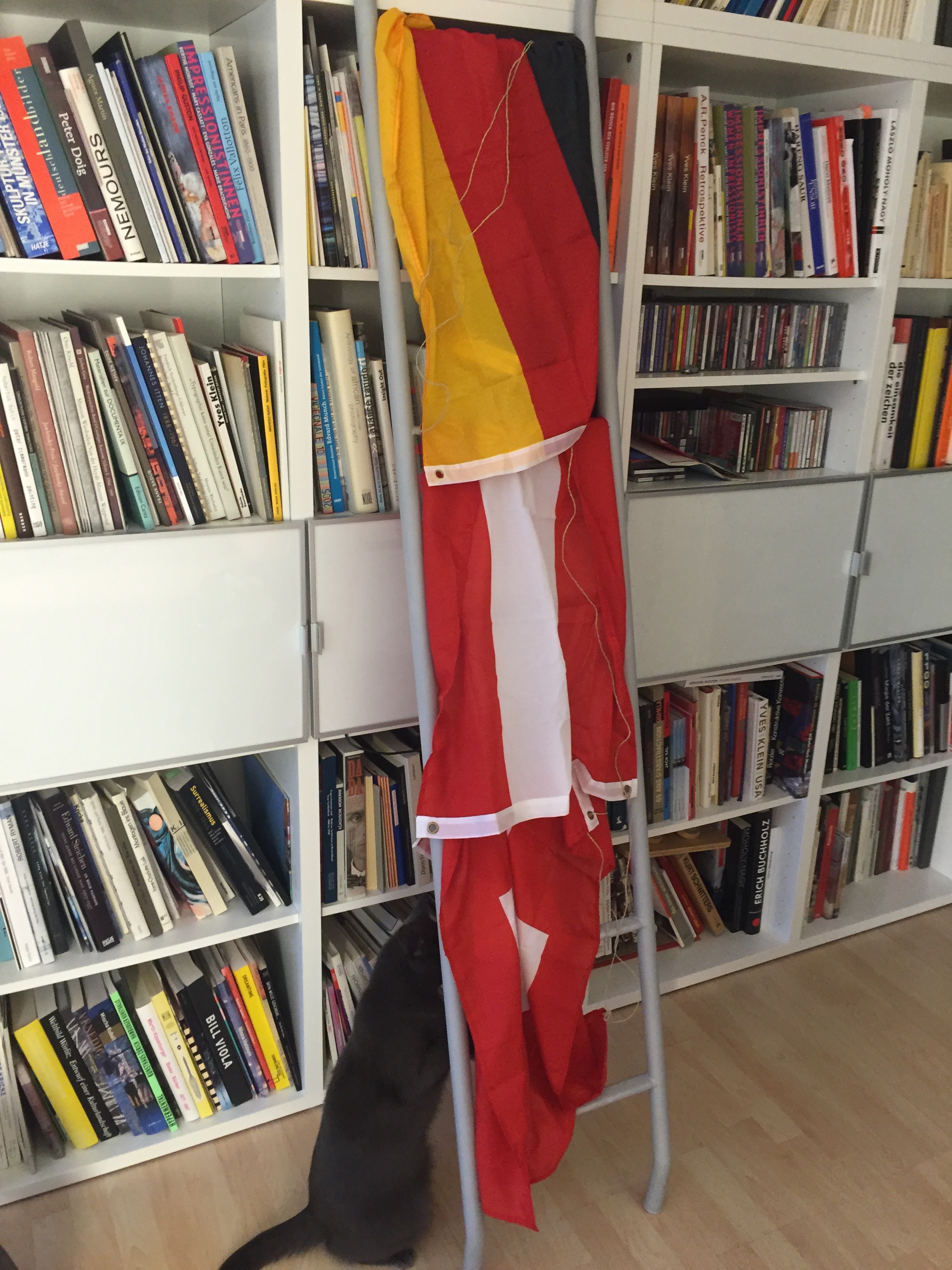 Am Montags packe ich die Fahnen von Österreich, der Schweiz und Deutschland ein, die wir wieder bei der Reception am Sonntag Abend hissen wollen und werden. Der Empfang findet diesmal an der Promenade des Hilton statt. Auch die Piratenfahne, die vor 2 Jahren bei einem Ausflug nach Tampa gekauft habe, könnte mit, denke aber, die Nationalflaggen reichen. Den auch abgebildeten Kater muss ich leider daheim lassen und gleich mal sicherstellen, dass die Fahnen bis zum Abflug überleben.
