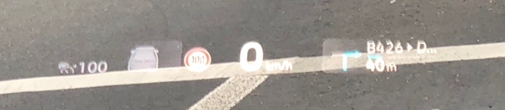 Wirklich das notwendige Minimum an Informationen im ID.3: die Verkehrslage vor mir, die Geschwindigkeit (und Geschwindigkeitsbegrenzung über den Assistenten), der Ladestand, die Navigationsanzeige im Pfeilmodus und der Fahrmodus. Im klassischen Cockpit werden andere und mehr Informationen angezeigt. Der von mir Probe gefahrene ID.3 war zusätzlich mit einem Head-Up-Display, über das die oben beschriebenen Infos auch nochmals in die Scheibe projiziert werden: