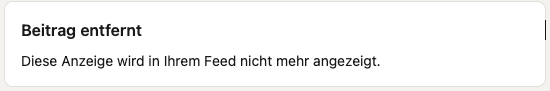 Und das halte ich auch denen entgegen, die noch immer gegenüber sozialen Kanälen skeptisch sind, denen die platten Werbebotschaften, die die LinkedIn-Timeline fluten, auf die Nerven gehen, denen der relevante Austausch und die Qualität fehlt. In dieser Beziehung stimme ich sogar ausdrücklich zu, denn auch mir werden jeden Tag Werbebotschaften von Unternehmen in die Timeline gespült, die mich nerven – und die nicht für mich relevant sind. Der Algorithmus von LinkedIn geht aber davon aus, dass sie für mich relevant sein müssten. Und wer hat schon Lust, sich immer wieder Anzeigen zu melden, sich quasi abzumelden – siehe die Screenshots vom entsprechenden Prozess.