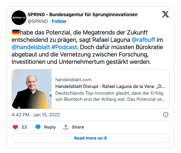Meine Hörempfehlung des Tages oder halt auf die Ohren: Sehr hörenswert finde ich den Handelsblatt Disrupt #Podcast mit Rafael Laguna de la Vera. Im Gegensatz zum Handelsblatt wäre meine Überschrift jedoch anders. Ich würde in den Mittelpunkt rücken, wie bürokratische Strukturen, wie Vergaberecht und Ausschreibungen, wie die Lähmschicht in den Verwaltungen Entscheidungen und Innovation behindern. Das haben Rafael und seine Kolleginnen und Kollegen erfahren.