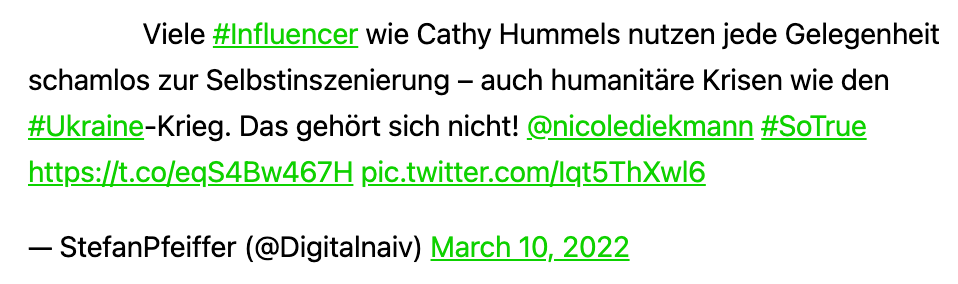 Unsäglich, wenn sich sogenannte Influencerinnen und Influencer noch das Leid der Menschen für ihre Vermarktung zu Nutzen machen!