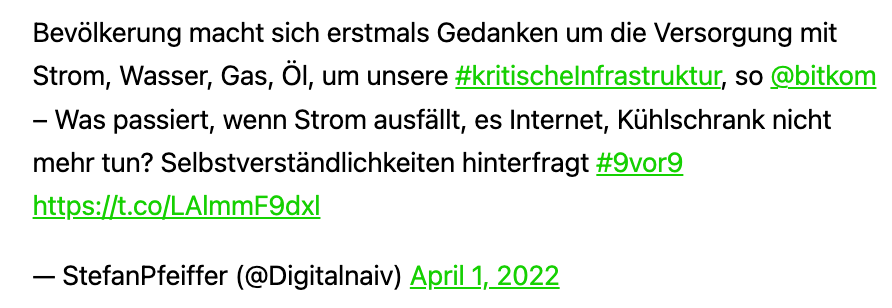 Erstmals scheint bei breiteren Teilen der Bevölkerung angekommen, was der Ausfall kritischer Infastruktur bedeuten könnte. Was ist, wenn plötzlich das Internet nicht mehr geht oder der Kühlschrank abtaut?