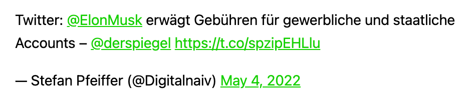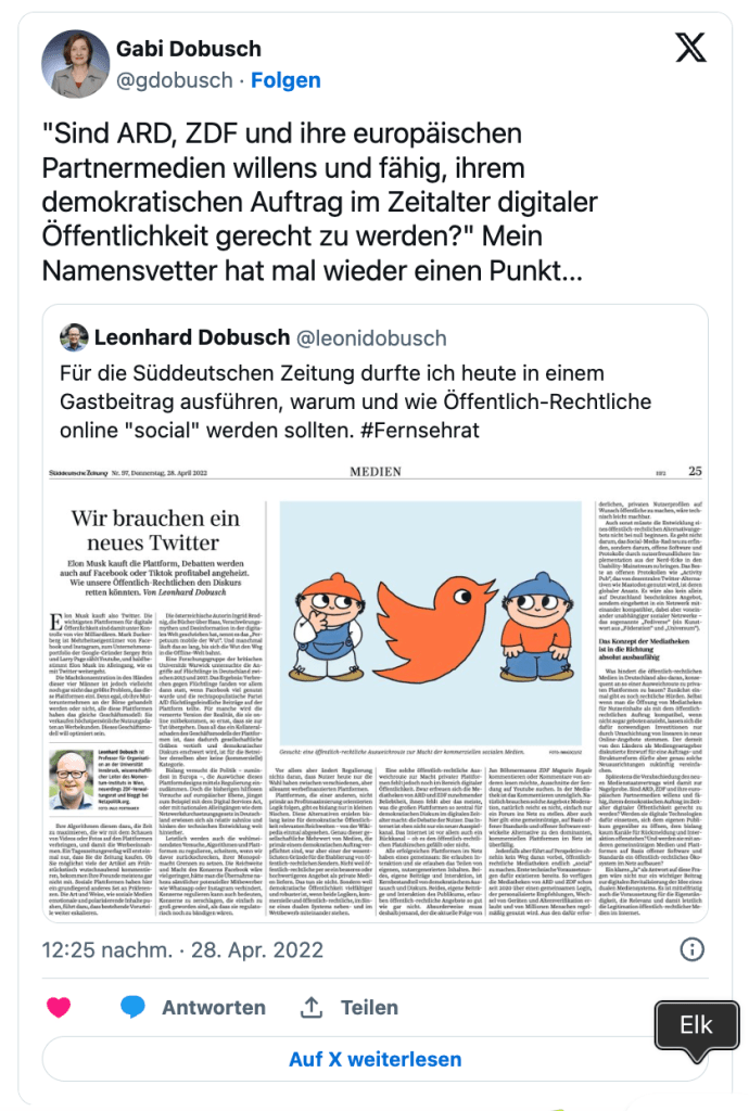 Und dies könnte offizielle Stellen, Behörden und Ministerien ermutigen, Twitter zu verlassen und vielleicht Mastodon als Plattform zur Kommunikation zu nutzen. Die EU Kommission hat es schon vorgemacht. Und laut Anke Domscheit-Berg ist auch in Deutschland was im Busch: