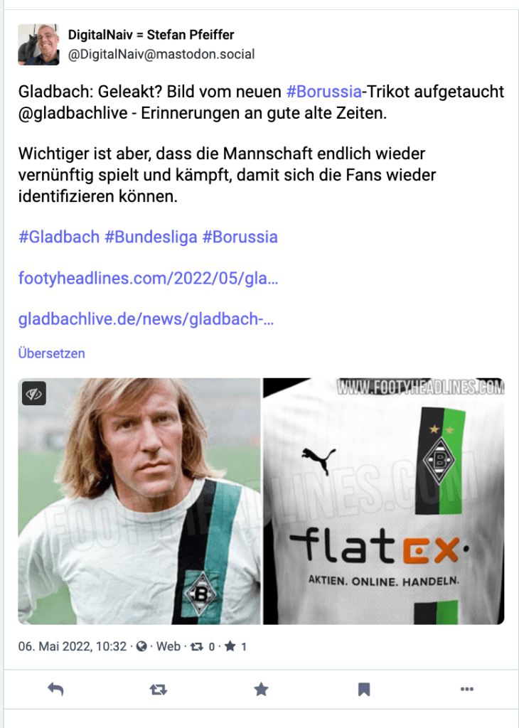 Hier auch nochmals der Link zu #9vor9, wo Lars und ich uns über Mastodon unterhalten haben.