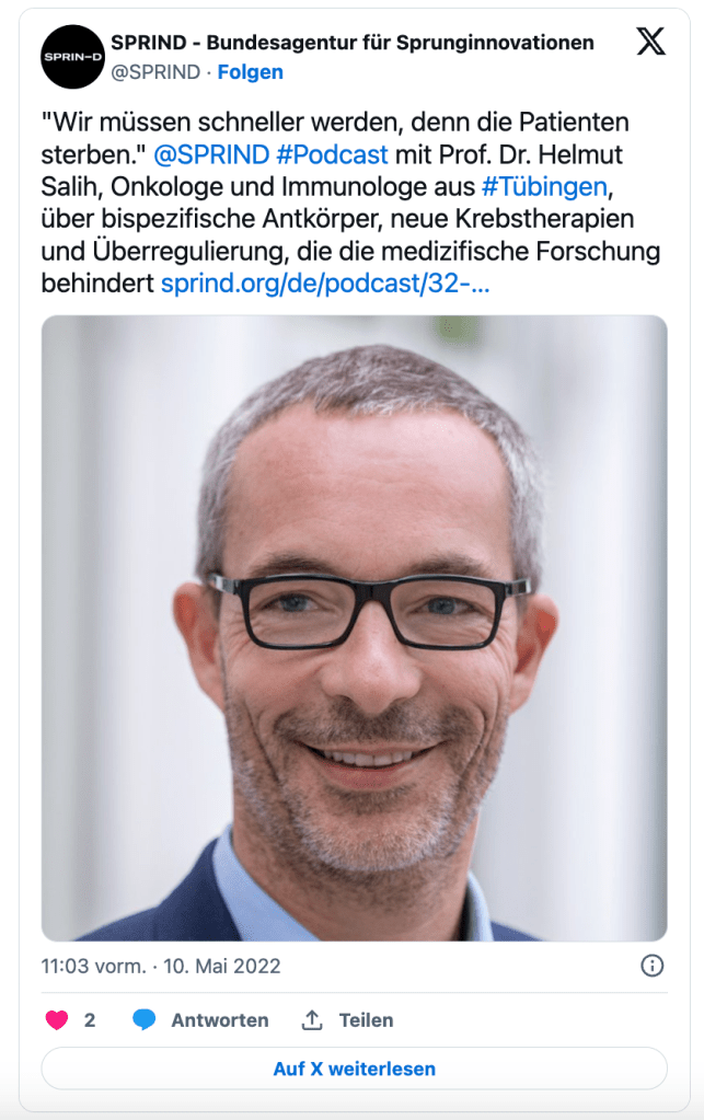 Hörenswert dieser Podcast von SPRIND. Die Hoffnungen vieler Krebspatienten ruhen derzeit auf dem COVID-19-Impfstoff, der in Tübingen in finaler Erprobung ist.