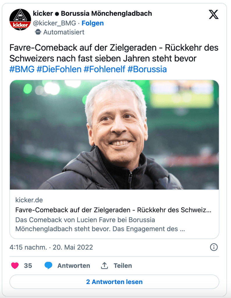 Es scheint so, dass Lucien Favre zurück zur Borussia (also der in Mönchengladbach) kommt. Ich hatte das am 20. April schon „gefordert“. Und bei der anderen Borussia wurde der ach so lässige Marco Rose zusammen mit seinem Team gegangen. Eine gewisse Schadenfreude kann ich mir da nicht verkneifen. Und der Partycrasher Peter Feldmann darf nicht fehlen.