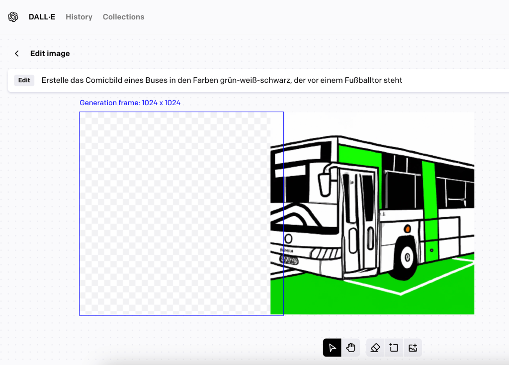 | Dall-E (3.5) | Open AI | Erstellen von Bildern, Fotos, Grafiken und „Gemälden“ in verschiedensten Stilen Das quadratische Ursprungsbild kann erweitert werden Dall-E ist politisch „voll korrekt“ |