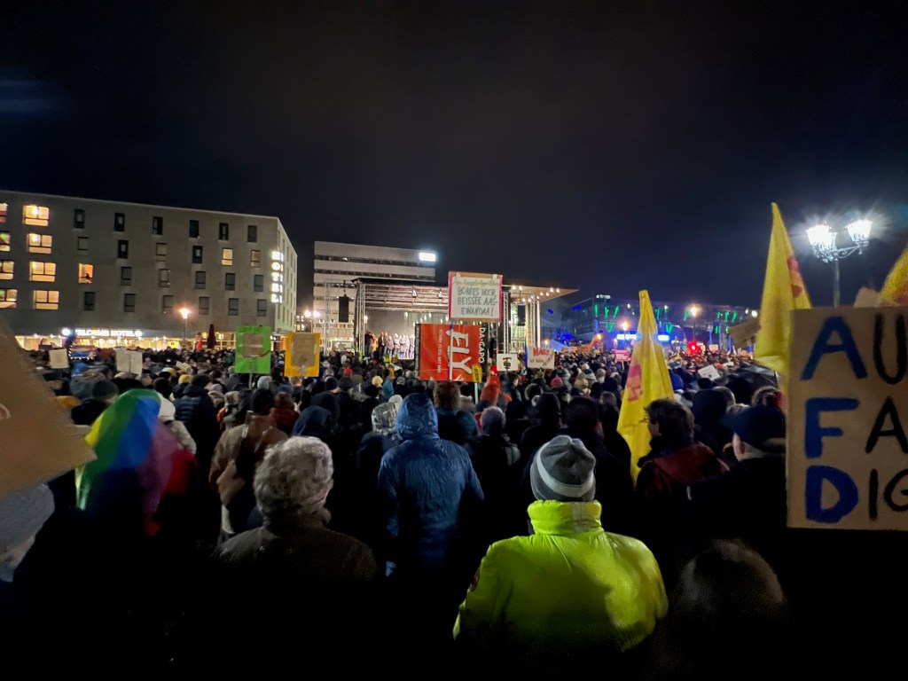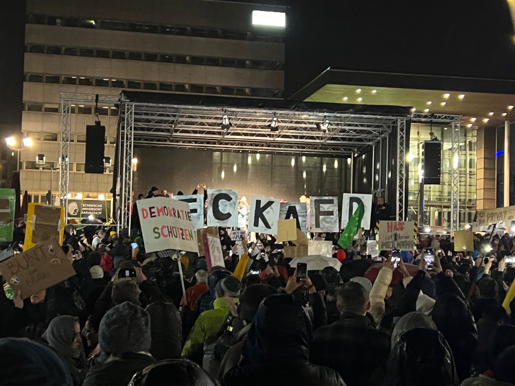 „Darmstadt ist bunt, divers. Heiner und Heinerin ist, wer Heiner sein will. Wenn die AfD einmal die Axt an die Menschenwürde anlegt, trifft es am Ende alle,“ so Robin Schäfer, DGB-Vize auf der NoAfD-Demonstration am 23. Januar 2024 auf dem Karolinenplatz in Darmstadt. Über 17.000 Darmstädterinnen und Darmstädter kamen laut Polizeiangaben zusammen, um für Demokratie, Miteinander und eine offene Gesellschaft und gegen rechtsradikalen Hass zu demonstrieren.
