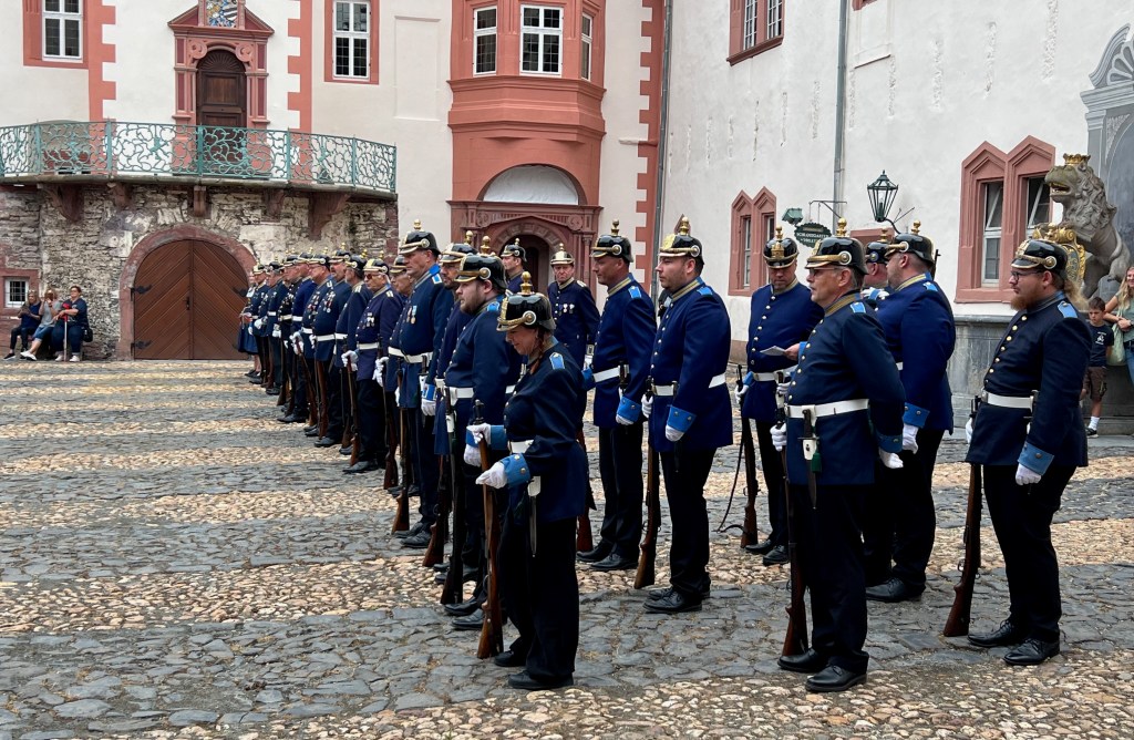 Jetzt habe ich in meiner Wochenschau doch wieder über ein Thema geschrieben, das mit Digitalisierung zu tun hat. Zum Abschluss noch zwei „weiche“ Themen. Vor einer Woche haben wir mit Freunden Weilburg besucht. Das ist das Städtchen, in dem wir auf das Gymnasium gegangen sind und wo wir uns kennengelernt haben. Wir sind dort einige Stellen abgelaufen und abgefahren, die wir aus unserer Kindheit und Jugend kennen, beispielsweise die Redaktion des Weilburger Tageblatts, wo meine Frau unter Lokalchef Heinz Pfeiffer ihre erste journalistischen Schritte unternommen hat. Rein zufällig fand an besagtem Sonntag der Feldgottesdienst der Weilburger Bürgergarde vor der anstehenden Kirmes statt.