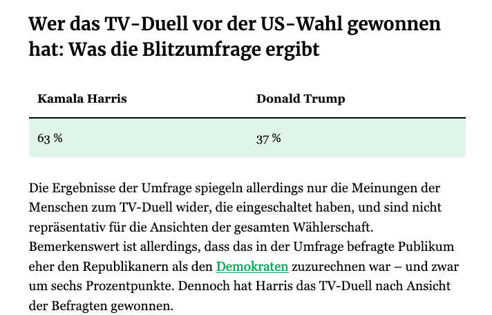 In dieser Wochenschau darf natürlich der Hinweis auf das Duell zwischen Kamala Harris und Donald Trump nicht fehlen. Das Trumpeltier machte seinem Namen Ehre.