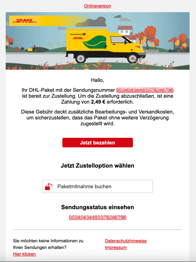 Viele von uns kennen sie: die Paketbenachrichtigungen per E-Mail oder SMS von DHL. Und nein, diesmal geht es nicht darum, dass das Päckchen dann doch nicht zum angekündigten Zeitpunkt eintrifft. Diesmal geht es um Betrugsversuche, um sogenanntes Phishing. Über gefälschte E-Mails versuchen Betrüger, an unsere Daten wie Passwörter, vor allem aber Zahlungsinformationen zu kommen.