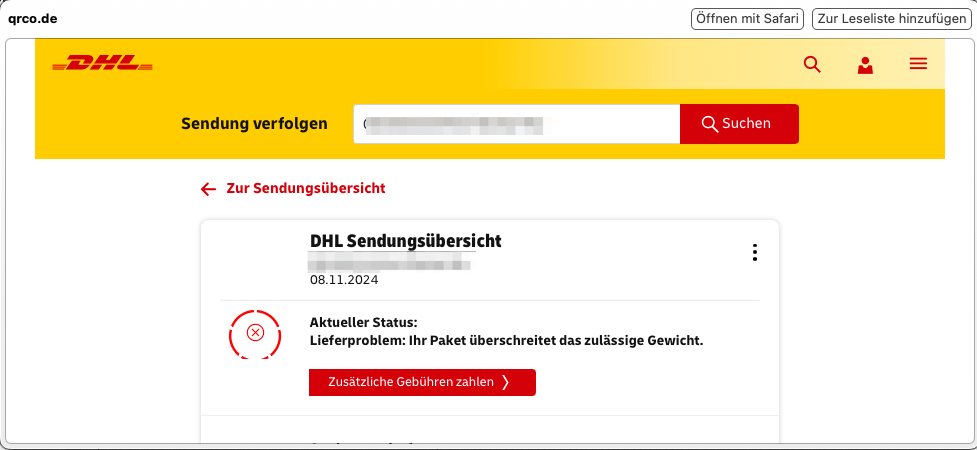 - Auf der offiziellen Seite der dhl unter dhl.de die Sendungsnummer überprüfen.