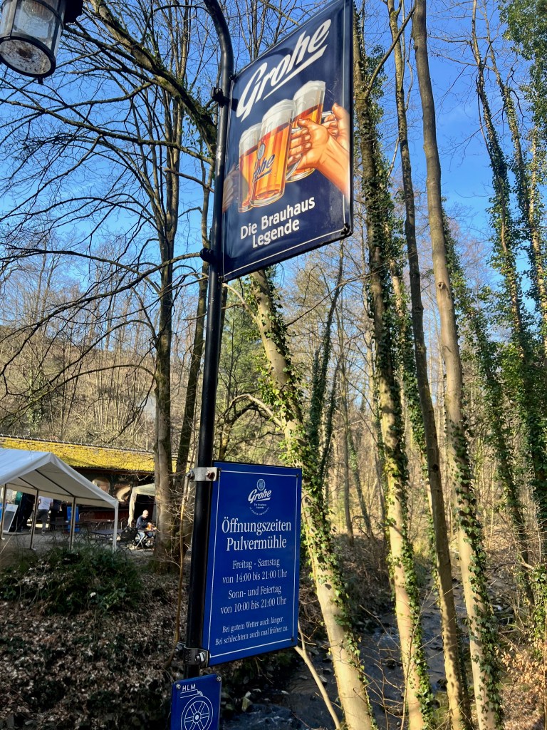 Gerade haben wir für März unnatürlich hohe Temperaturen und schönes Wetter. Das haben wir vergangene Woche im Hermannshof genossen. Diesen Sonntag sind wir zum Biergarten an der Pulvermühle gelaufen, der seit dem 7. März schon wieder geöffnet hat. Die Pulvermühle in Mühltal ist für uns von Ewwerscht das ideale Ziel für einen Spaziergang. Wir brauchen rund 45 Minuten und freuen uns natürlich auf dem Weg auf ein Kaltgetränk. Da läuft es sich gleich besser.