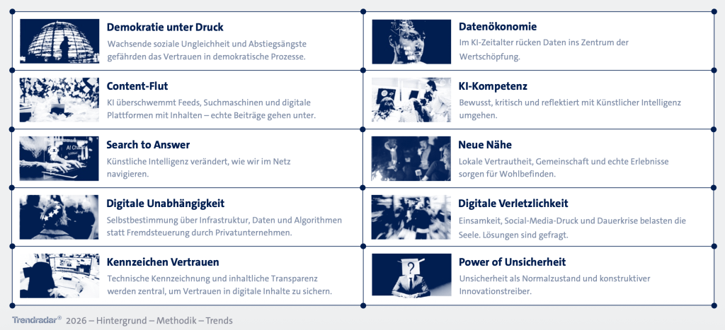 Die 10 Fokustrends des ARD-Trendradars 2026.